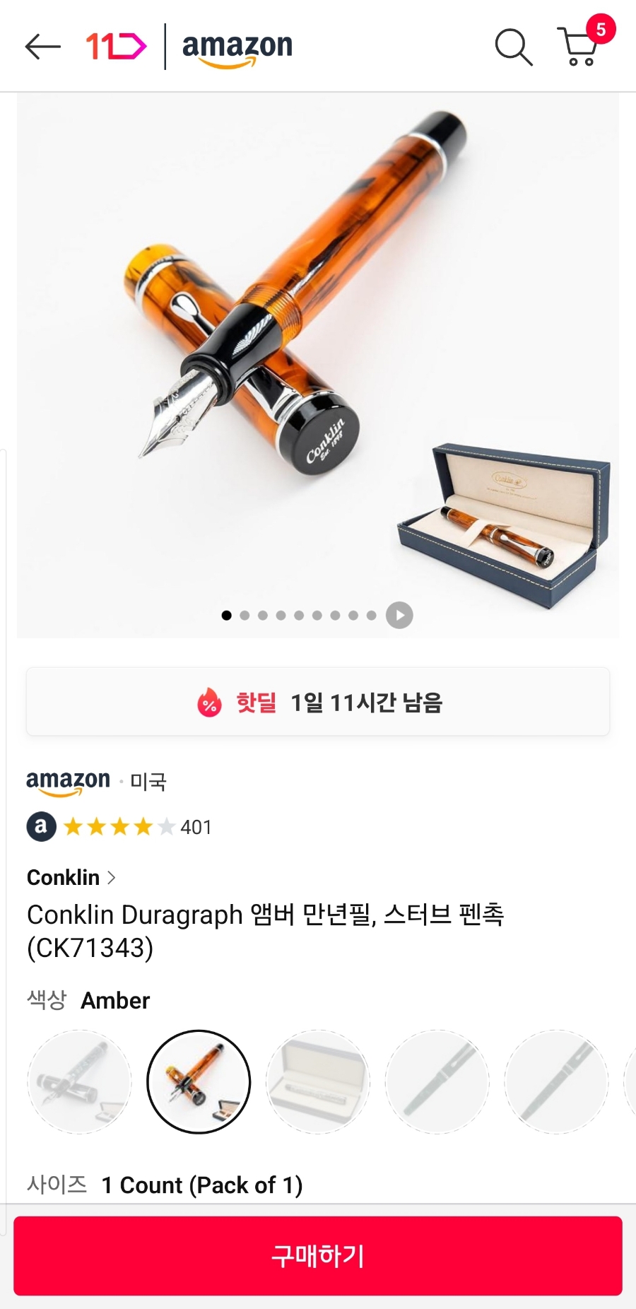카드실적이 살짝 부족한 2월 말 11번가 아마존에서 만년필을 한 자루 주문했습니다.